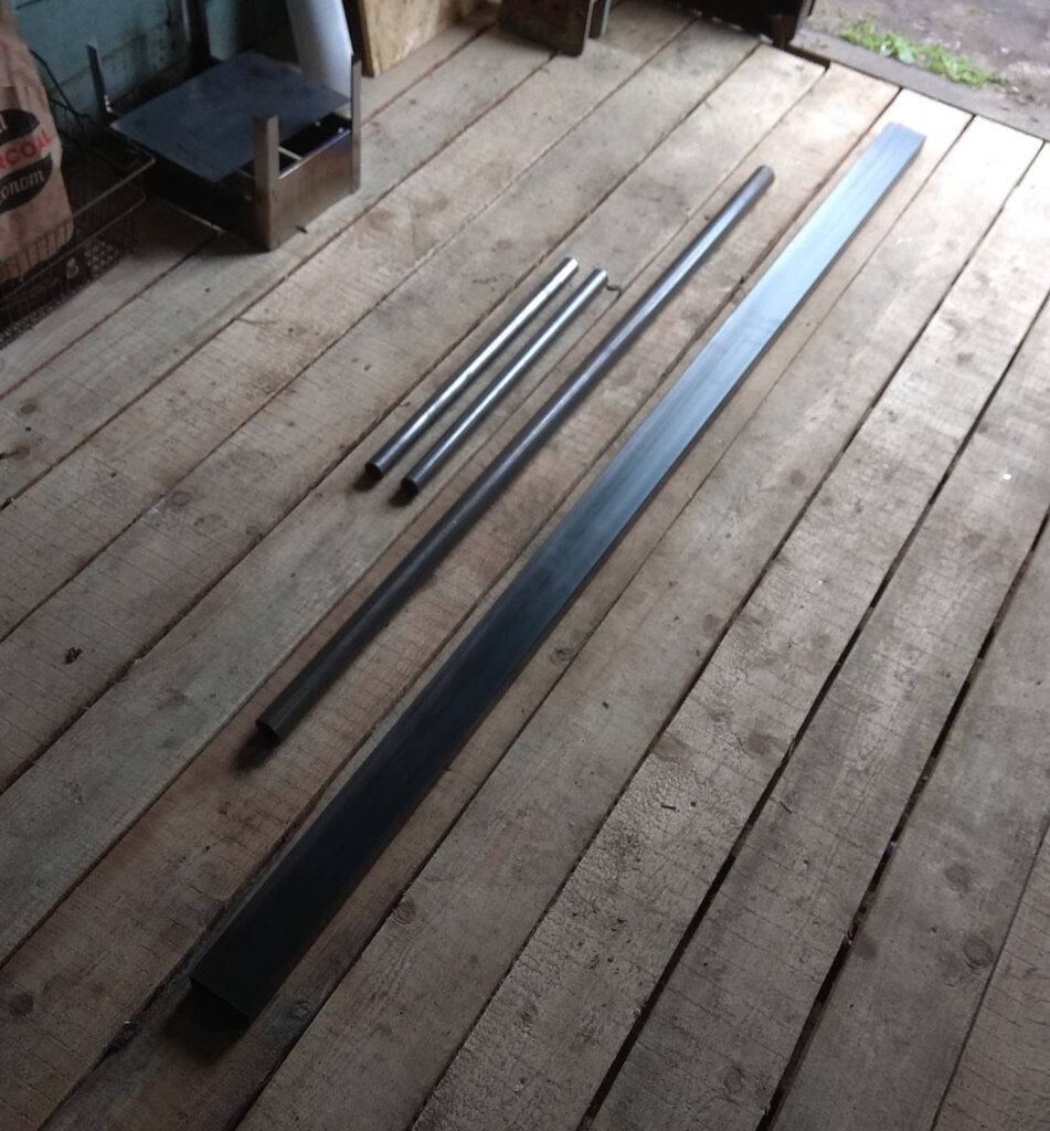 Все материалы купил в обычном строительном магазине. Трубы продают в основном длиной 3 метра, поэтому пришлось в гараже их нарезать болгаркой по размерам. Получилось одна прямоугольная труба 80х40х2мм длиной 2 метра, одна круглая труба Ду 32х3,2мм длиной 1,5 метра (длину сделал с запасом, дальше объясню почему) и две круглых трубы Ду 25х3,2мм длиной 0,5 метра.