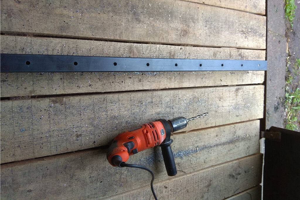 - заготавливаются отверстия на стене, на деревянных заготовках и металлических лепестках;