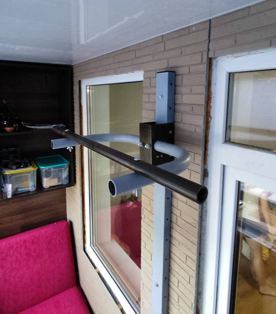Есть еще более простая конструкция. Это только одна перекладина, на которой можно только подтягиваться. Но эта конструкция — одна из наиболее компактных. Ее можно повесить над дверным проемом и она не будет мешать, не будет привлекать внимания. Сделать турник такой конструкции имеет смысл, если для размещения более серьезного снаряда нет места или есть шведская стенка.