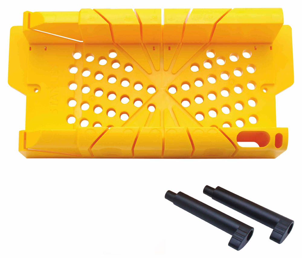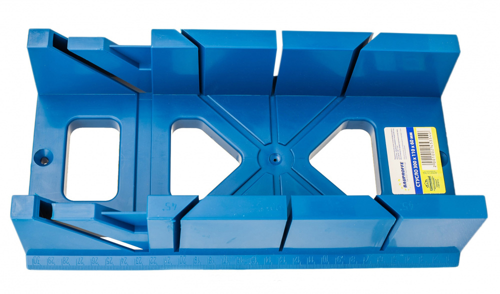 Обычное стусло – это лоток в виде П-образного профиля, изготовленный чаще всего из пластика. Также оно бывает из металла или дерева. В его стенках имеются прорези для направления режущего инструмента под заданным углом к основанию. Эта разновидность имеет шаблонный тип и не подлежит регулировке: резка материала проводится под стандартными углами (обычными или отрицательными), которые конструкционно заложены в пазы. При выборе стусла надо смотреть, чтобы оно должно быть шире, чем заготовка для распила. Для фиксации материала в приспособлении может применяться струбцина или специальные штыри – если в конструкции есть перфорация для их установки. Обычно же заготовки в нём просто придерживаются свободной рукой.