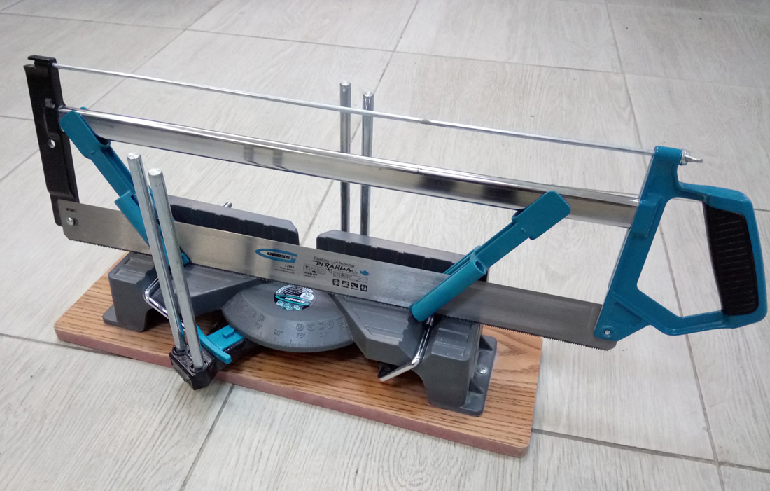 Ножовка – широко применяемый режущий инструмент для распила багета. Надо внимательно подходить к его выбору: полотно должно соответствовать размеру прорезей стусла – быть достаточной толщины и ширины. При работе ножовкой надо следить за наклоном инструмента, чтобы не повредить стусло и соблюсти правильное направление. При этом спил детали часто получается не очень гладкий и иногда требует выравнивания и шлифовки.