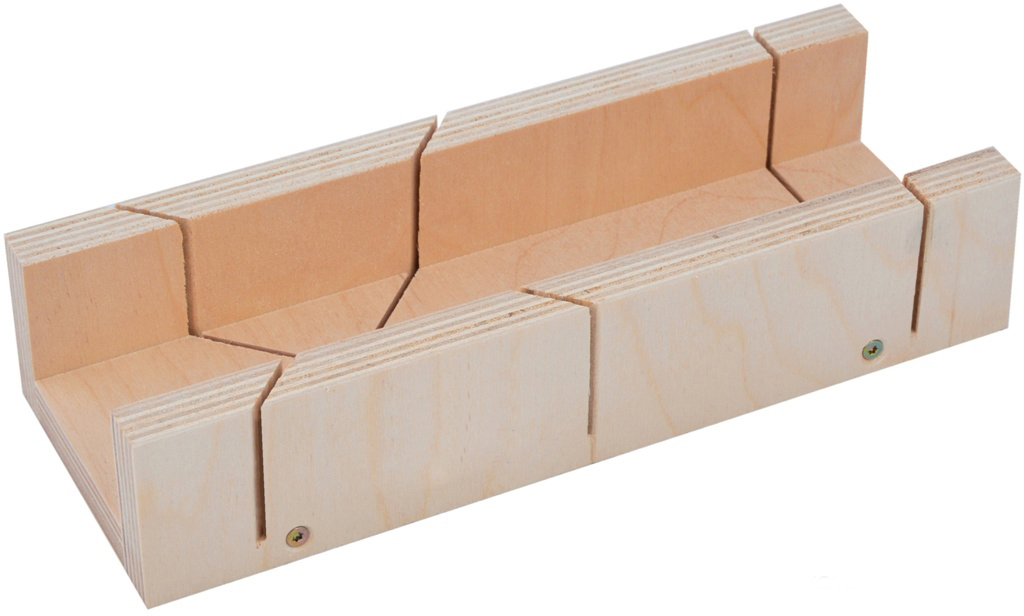 Данный способ обрезки потолочного плинтуса состоит в создании специальной формы. Для этого вам понадобится 3 дощечки или куска толстой фанеры. В боковинах изделия проделайте надрезы под углом 45 градусов с помощью транспортира. Таким образом, обрезать багет получится без стусла.