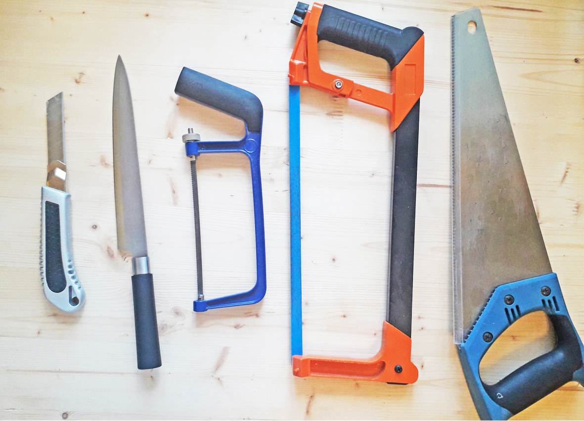 - При разрезании сильно нажимать на нож или ножовку не следует.