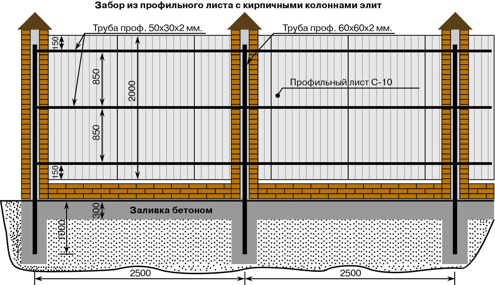 - на столбы профилированная труба 60*60 мм, толщина стенки 2 мм, трубы 3 м длины;