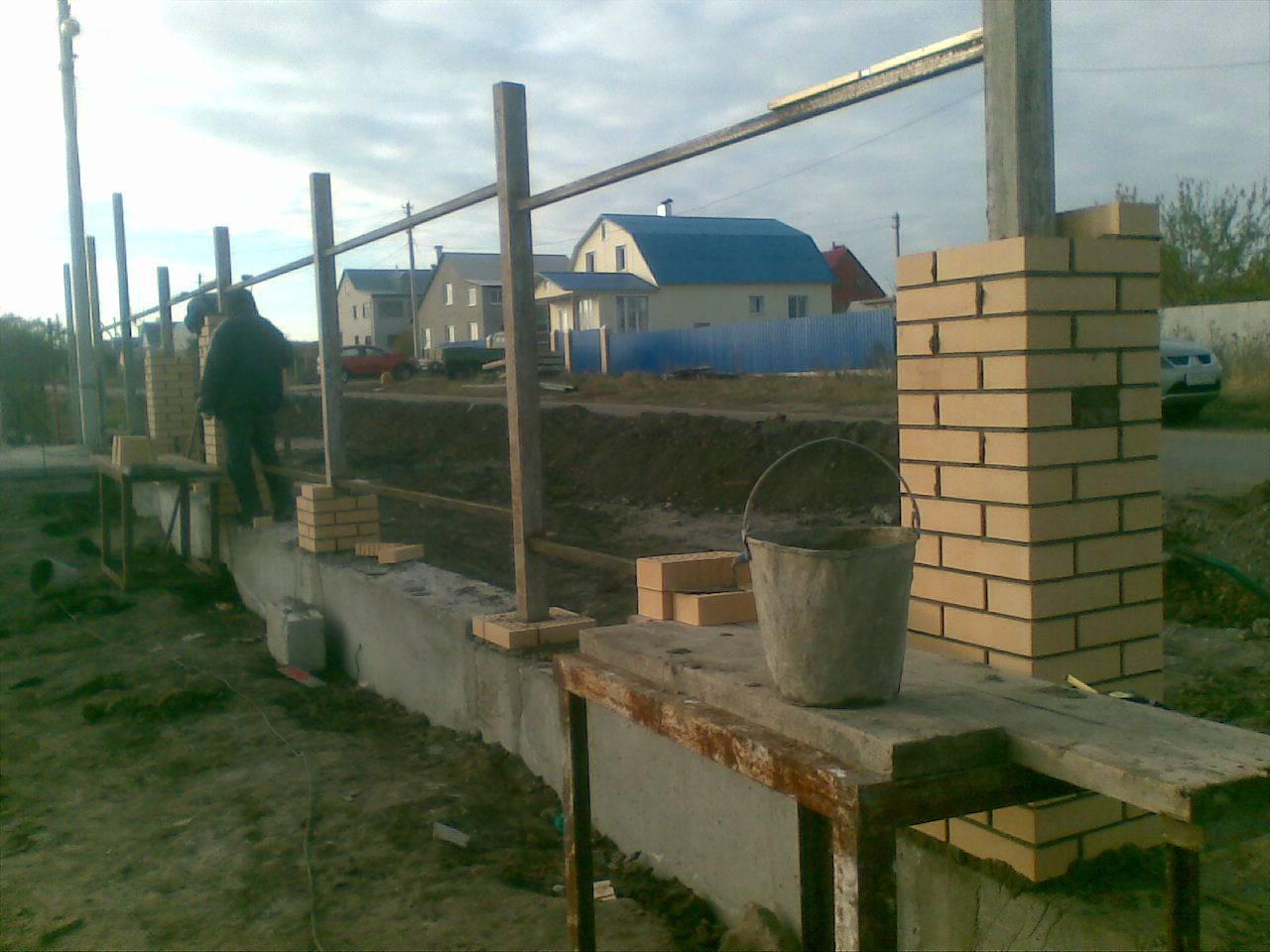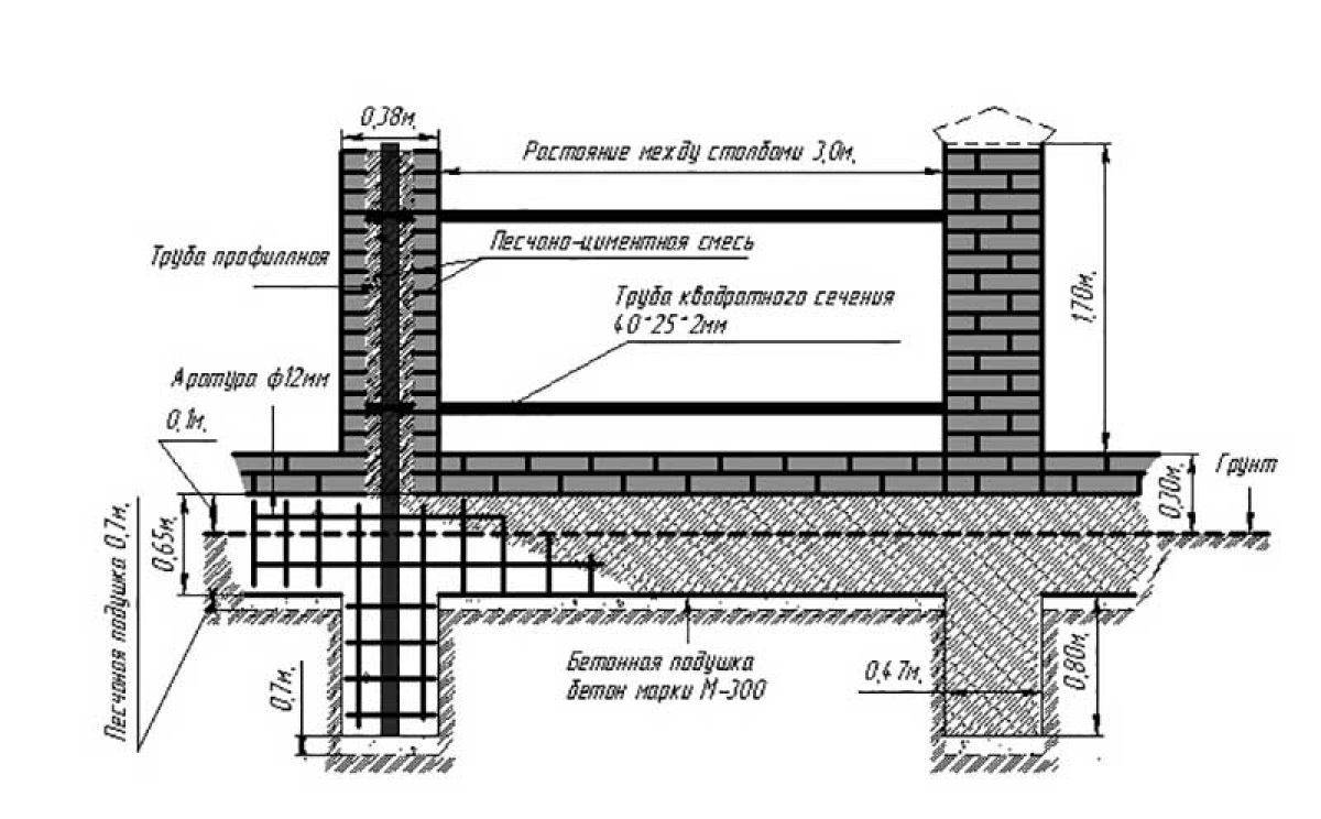 Ограда с кирпичными столбами
