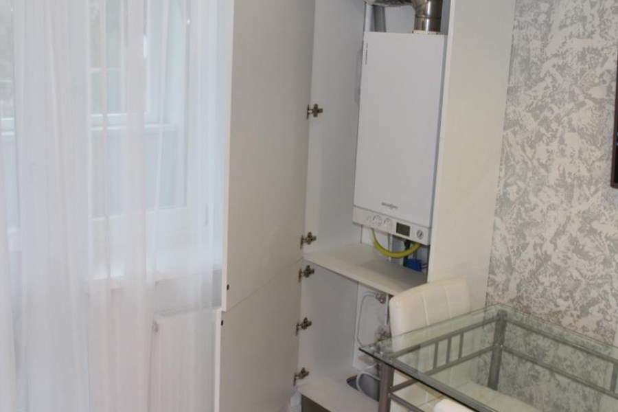 При установке новой мебели нужно заранее обговорить размеры и месторасположение шкафа под котел. Также учитывается разводка коммуникаций, которые при желании можно спрятать.
