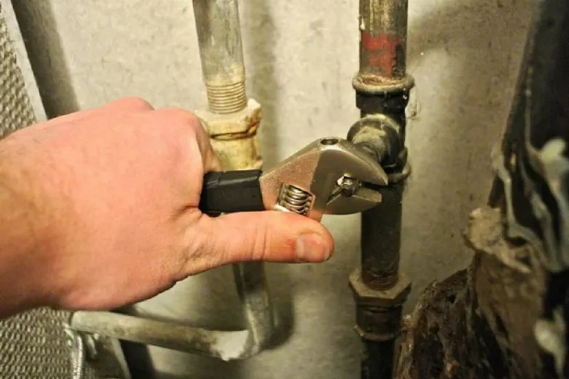 - Медленно открутите гайку разводным ключом до того момента, пока не будет слышно характерное шипение.
