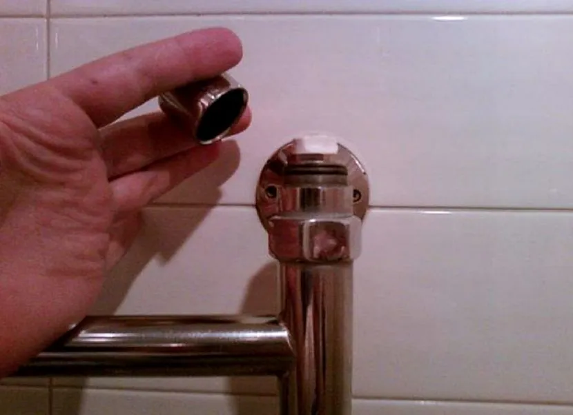Воздухоотводчик на полотенцесушителе может быть скрыт под декоративным колпачком