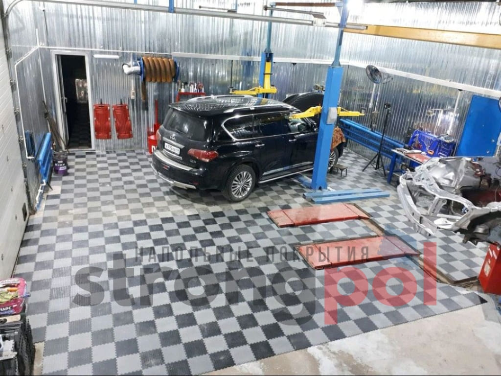 На производстве модульное покрытие ПВХ укладывается в цехах, различных по предназначению: металлообрабатывающих, пищевых, фасовочных, фармакологических, сборочных заводах, складских помещениях и погрузочных терминалах. Плитка такого рода используется на СТО, частных гаражах, автомойках, автомобильных паркингах, коридорах вокзалов и аэропортов, в багажных терминалах, в тренажерных залах, супермаркетах и выставочных центрах. Данные модули изготавливаются в широкой цветовой гамме и имеет разную фактуру, поэтому они могут стать отличным дополнением общего интерьера помещения.