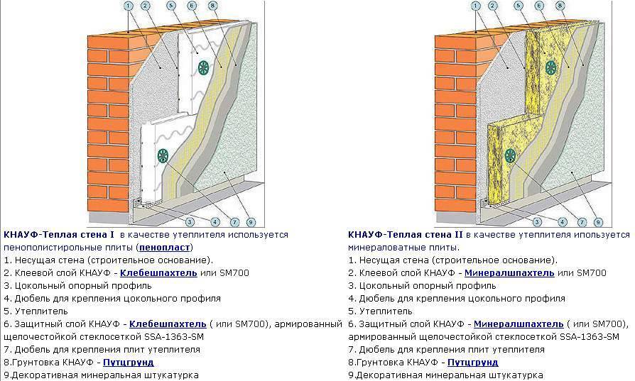 Рис. 7. Утепление пенопластом и минеральной ватой