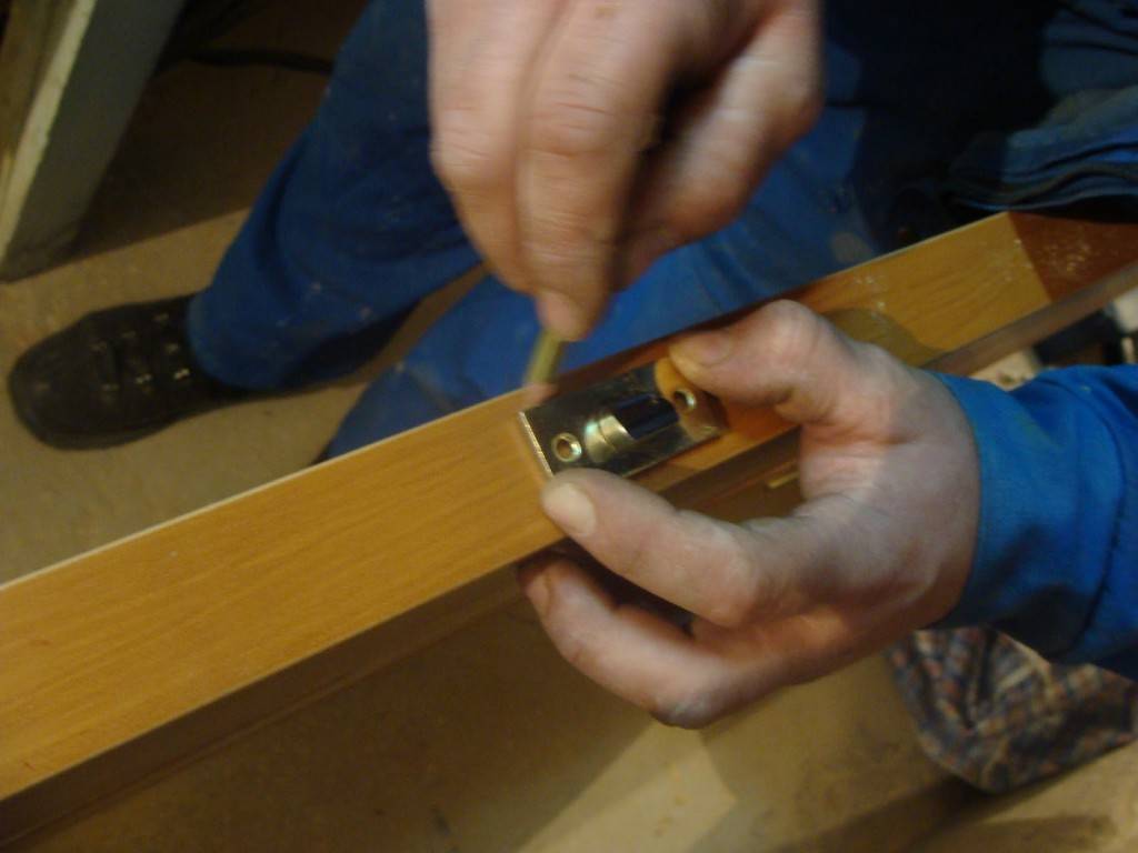 Прежде чем прикрутить накладку, необходимо несколько раз закрыть дверь. Отсутствие проблем будет свидетельствовать о надлежащем формировании паза под язычок.