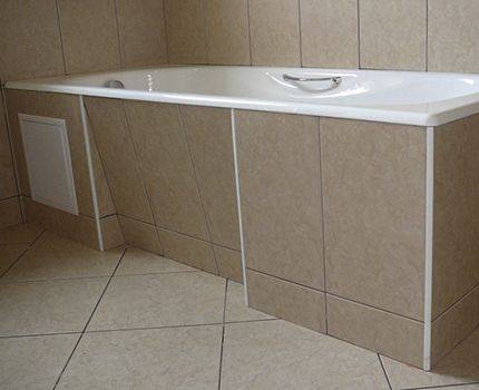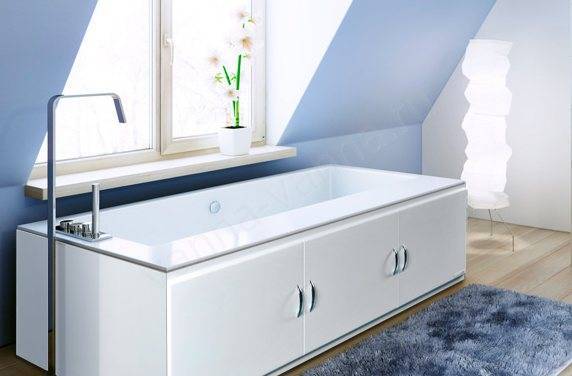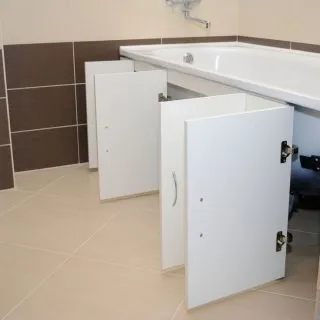 Это чисто декоративное решение и служит лишь для улучшения внешнего вида. Изготавливают их из различных материалов под любые вкусы (например, под мрамор). Установка не представляет особых трудностей, достаточно точно следовать инструкции производителя для быстрого и облегченного монтажа. Скрытое пространство там, где низ под ванной, можно также сделать для хранения разнообразных хозяйственных предметов, положив их в люк.