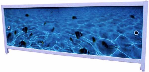 Из достоинств также можно отметить то, что такие панели плотно прилегают к бортикам чаши. Каркас и фиксаторные элементы для крепления панели поставляются покупателям в комплекте с самим экраном.