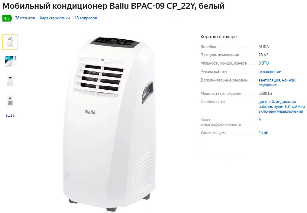Выбрать для квартиры кондиционер Ballu BPHS-09H можно от 24000 рублей Плюсы