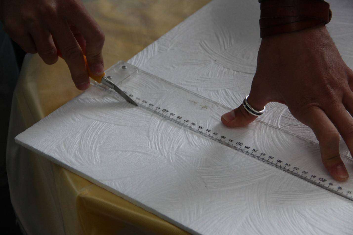 Не делайте это руками, ведь материалы из пенопласта непрочные и хрупкие, так что можно легко отломать уголок или же плита треснет.