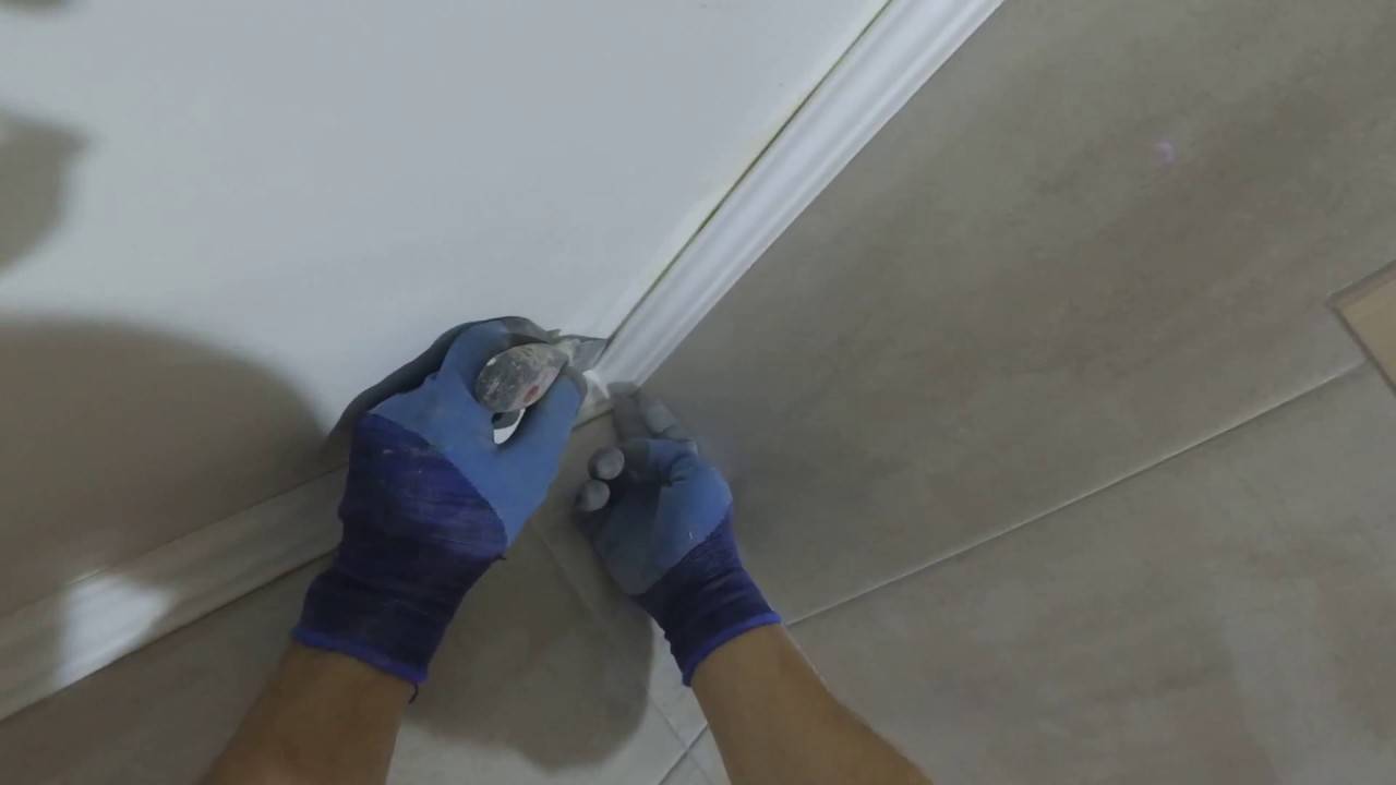 Начинать нужно с того, что на небольшую область потока наносят тонким слоем шпатлевку. Разровнять ее и прижать к ней потолочную плитку, зафиксировав ее в нужном положении. Швы получатся ровными и белыми, просветов видно не будет.