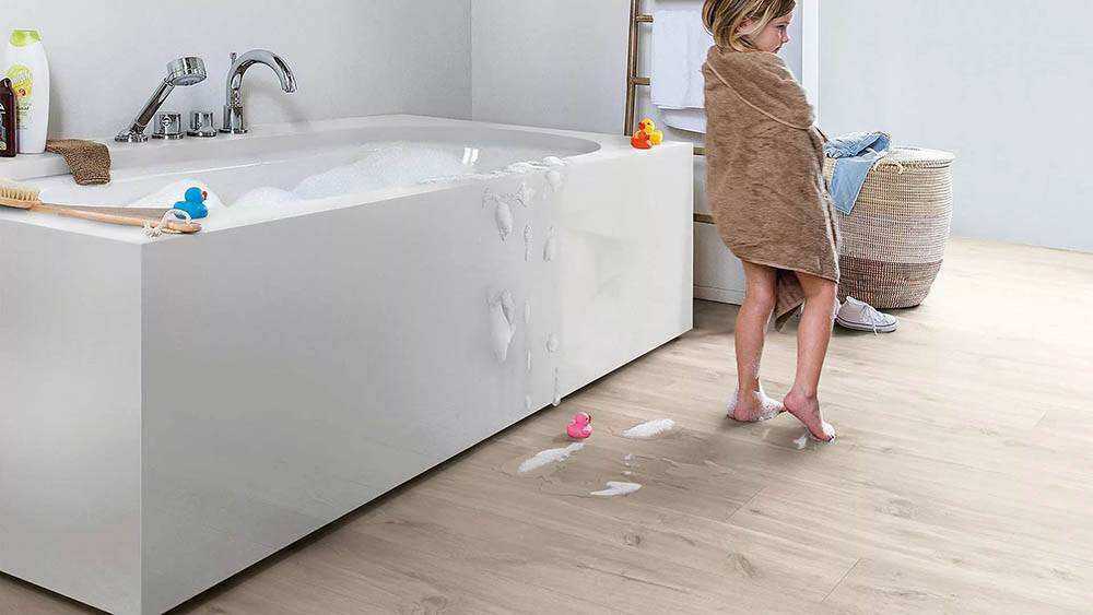 - При попадании влаги пол может стать скользим при неправильном выборе покрытия. В этом случае стоит положить коврик перед душем или ванной.