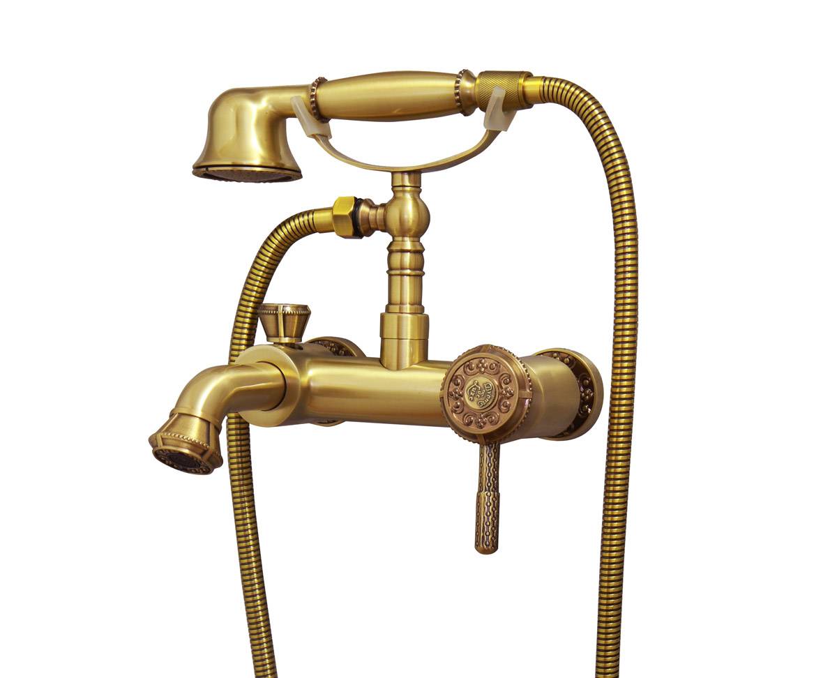 Смесители из меди, бронзы или латуни часто изготавливают причудливой формы или оформляют под старину. Для таких приборов металл ничем не покрывают, а для придания антуража наносят тиснение или гравировку.