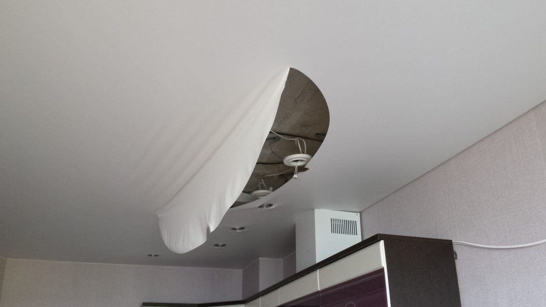 Если у вас бесшовный натяжной потолок на основе пленки ПВХ, то решение проблемы уже будет не таким простым