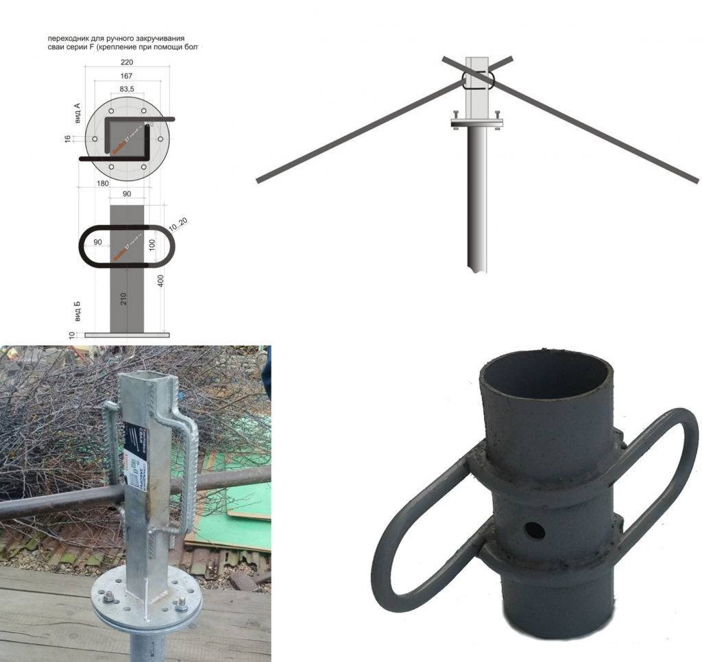 К нижнему, предварительно заостренному концу такой трубы привариваются винтовые лопасти, обеспечивающие возможность вворачивания (вкручивания) её в землю. Указанный способ монтажа свай примечателен тем, что при вворачивании трубных опор грунт под фундаментом не разрушается, а лишь частично уплотняется, что не снижает его несущей способности.