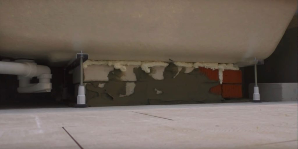 В данном случае резервуар при эксплуатации просядет, если не применить элементы жесткости. При принятии решения, на какой высоте от пола устанавливать ванну, необходимо учитывать, что под ее днищем будет располагаться сифон. Для его стабильного функционирования требуется свободное пространство, равное примерно 150 миллиметрам.