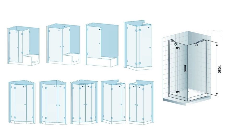 Также имеется еще один важный элемент в конструкции, который влияет на окончательный выбор сантехники – двери душевой кабины. Может отличаться механизм открывания: распашной, раздвижной, дверцы-гармошка.