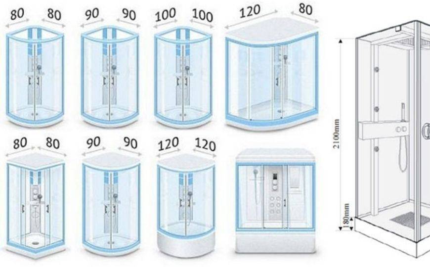 - какие размеры душевой кабины имеются в продаже и являются стандартными;