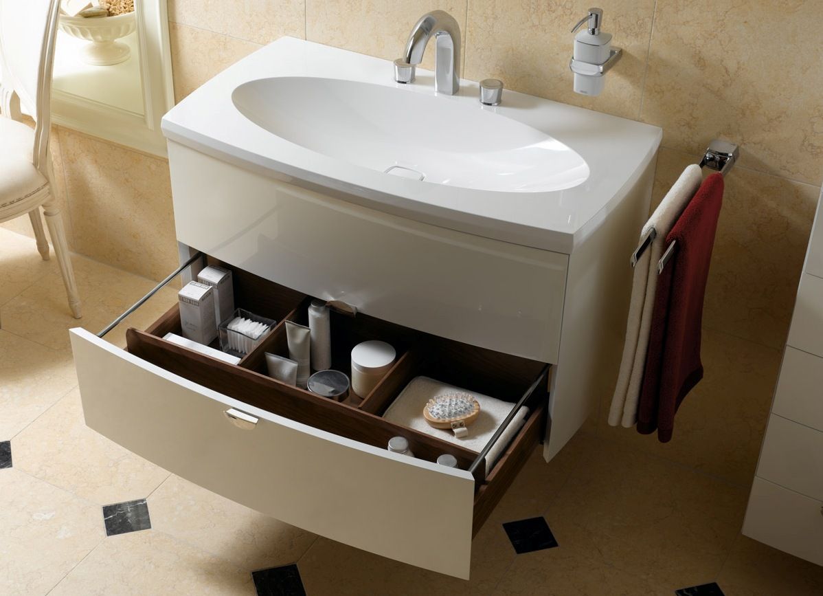 Внутри таких ящиков помимо предметов личной гигиены можно хранить розетки для фена.