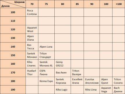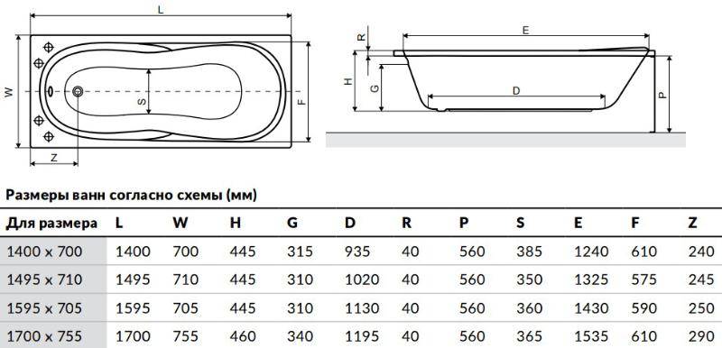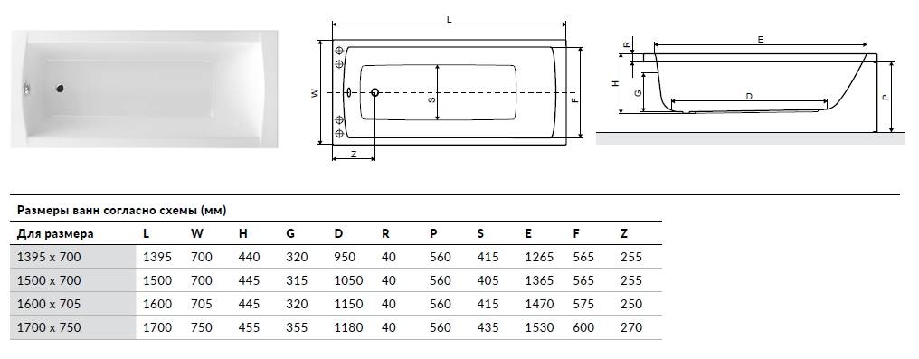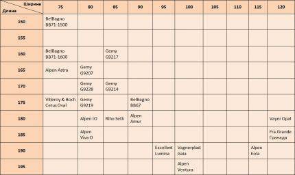 В этом случае размерный шаг не обязательно кратен 5 см. Например, ширина ванны Triton Medea составляет 142 см.