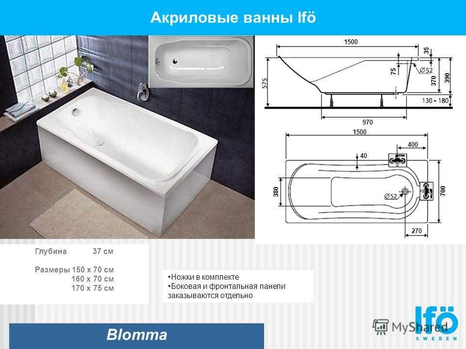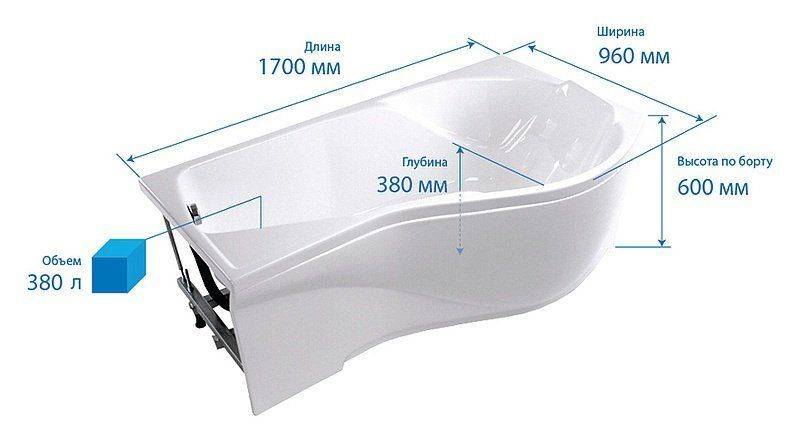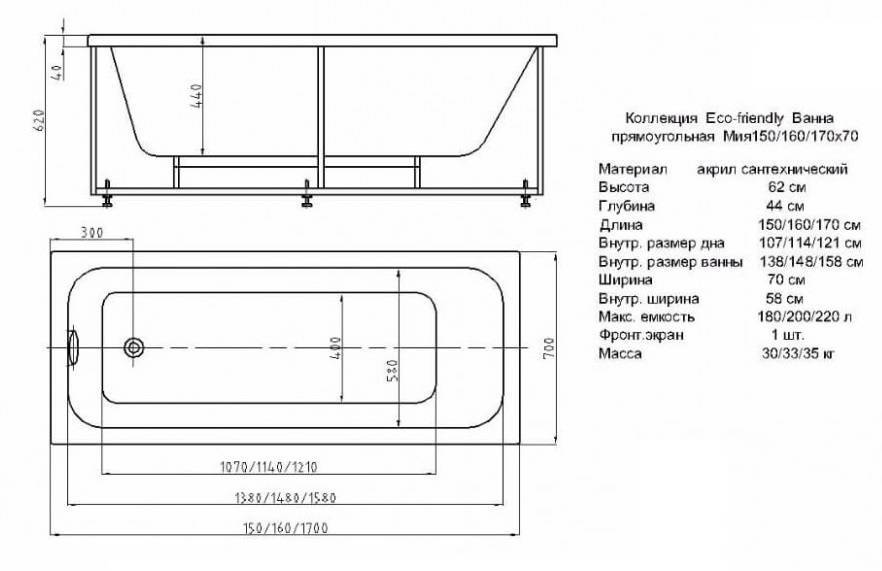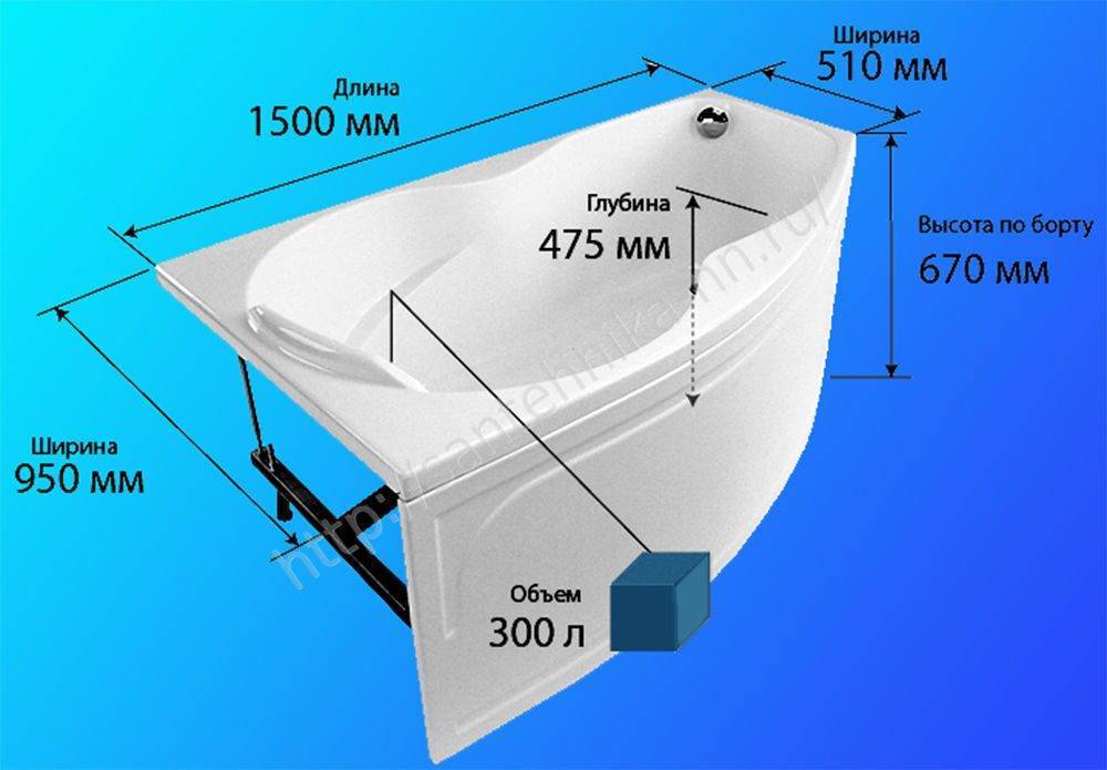 Длина изделия не обязательно должна быть точно такой же, можно принимать ванну немного короче, так как голова лежащего в ней человека будет упираться в бок, а колени могут быть немного согнуты.