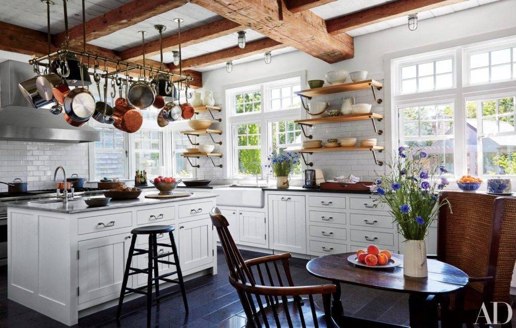 Для данного стиля характерна грубая отделка. Еще одним хорошим решением будет использование балок.