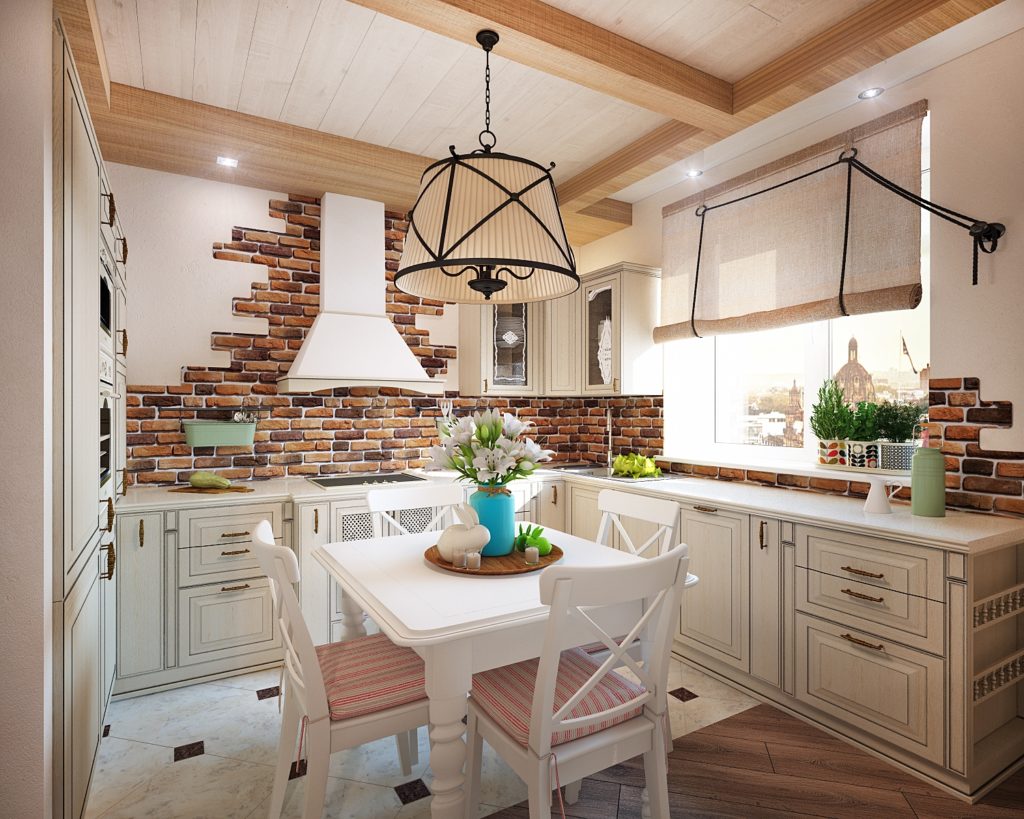 Использование штукатурки, чтобы отделать потолок и стены кухни, имеет следующие преимущества: