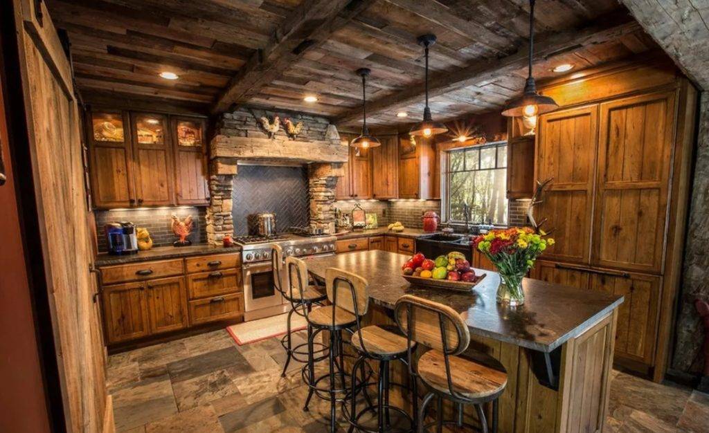 В этом стиле часто применяют дерево, в качестве основного материала или в качестве акцента. Потолок оформляют фактурными балками или обшивают полностью.