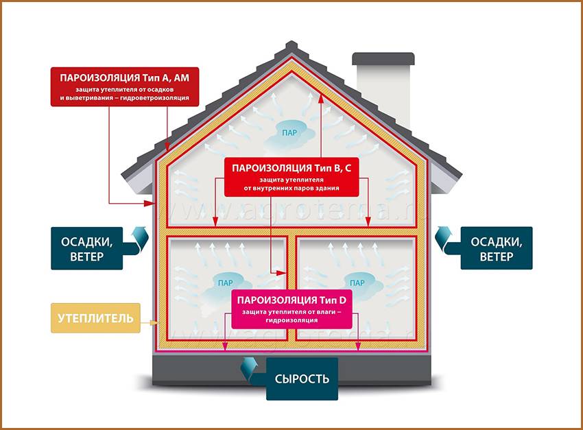 - защиту утеплителя, кровельных и стеновых элементов от увлажнения;