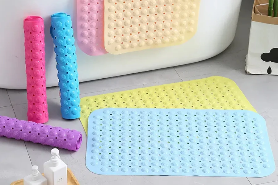 Они сделаны из резины или ПВХ, которые обеспечивают лучшее сцепление и идеально подходят для влажных помещений. Кроме того, они имеют присоски или нескользящую подложку. Эти свойства предотвращают их скольжение по полу ванной комнаты. Такие качества делают их популярными, особенно среди пожилых людей.