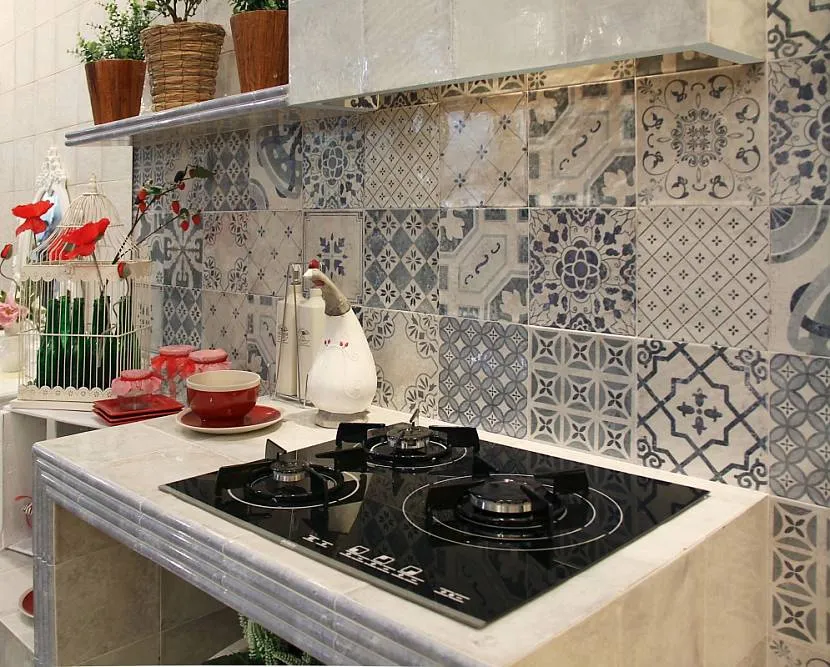 Для классических кухонь больше подходит плитка под камень квадратной формы и небольшого размера (от 10×10 см до 30×30 см), плитка под дерево (правда, чаще всего это уже керамогранит) или плитка с узором.