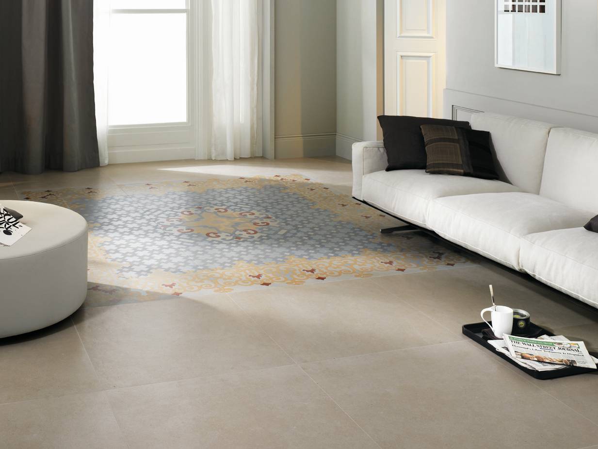 - Плиточный пол без швов (из ректифицированной плитки) – универсален и легок в уходе. Однако из-за того, что покрытие получается практически монолитным, оно становится менее прочным.