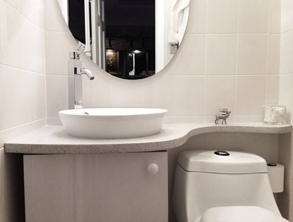 Эти изделия обладают исключительными свойствами, к которым можно отнести устойчивость к воздействию влаги, устойчивость к перепадам температур и повышенная прочность при механическом воздействии. К тому же ванная комната с каменной столешницей смотрится очень дорого и этот материал подходит к любому стилю интерьера.