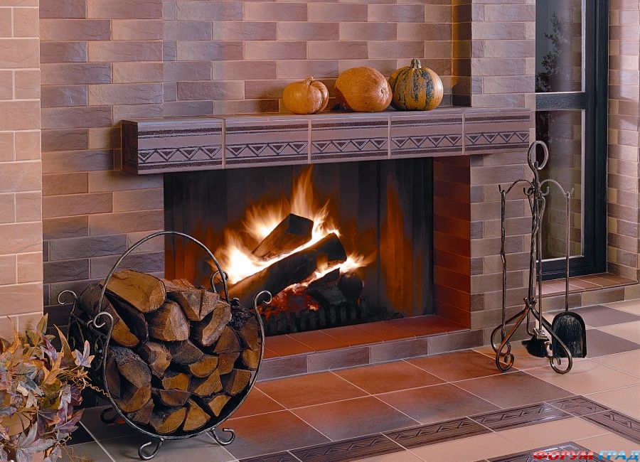 Облицовка становится связующим звеном между камином и интерьером помещения. Используются следующие материалы: