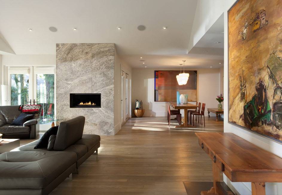 Однако красивый камин в доме в современном стиле уже не представляет собой окаймленную вензелями нишу в стене. Посмотрите, как интегрируют камины в интерьер сейчас: