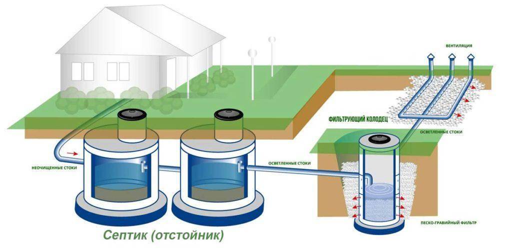 На строительном рынке представлено множество конструкций септиков, которые можно использовать практически во всех условиях, даже в случаях глинистой почвы или близком протекании к поверхности подземных вод. Существуют очистительные сооружения, где фильтрации сточных вод происходит до 100%, и поэтому сброс жидкости может происходить в реки, озера или на грунт.
