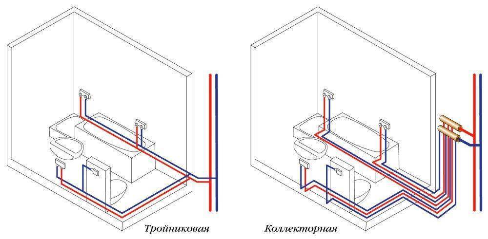 Разводка труб бывает последовательной, коллекторной и комбинированной.