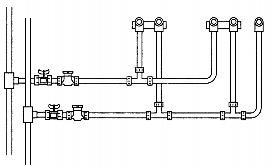 Впрочем, для квартир с одним санузлом и небольшим количеством используемой сантехники такой вариант может оказаться лучшим. Значительный недостаток системы – невозможность отключения одного из сантехнических приборов для замены или ремонта.