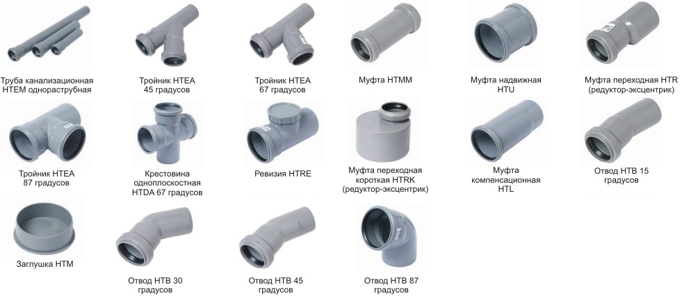 Номенклатура изделий из ПВХ, которые используются при монтаже внутренних канализационных сетей