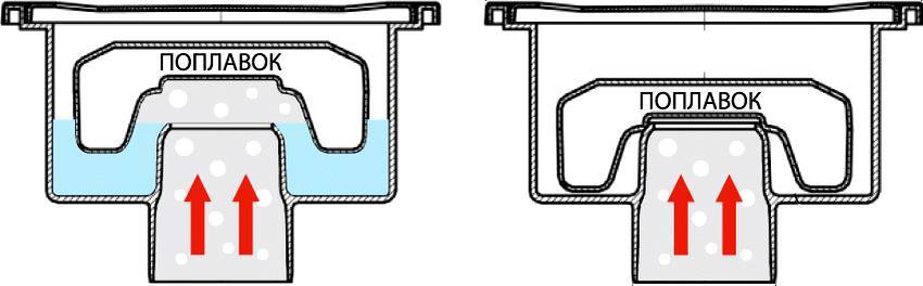 Поплавковые модели канализационных трапов с сухим гидрозатвором работают по принципу сливного бачка