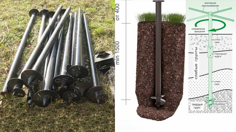 Свая представляет собой толстую металлическую трубу, конец которой снабжен винтовой лопастью. Закручиваются в землю они с привлечением специальной техники. Есть некоторые виды забивных свай, но используют их редко.