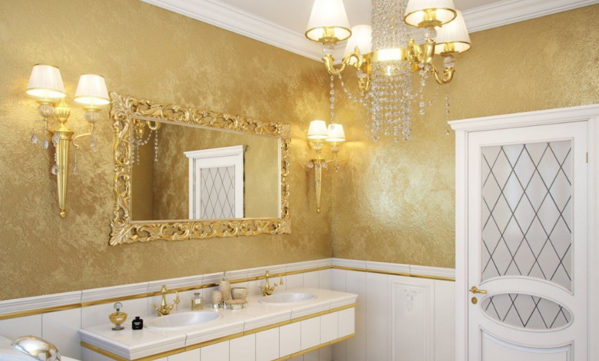 Самый стандартный вариант классического стиля дизайна — сочетание белого цвета и золота.