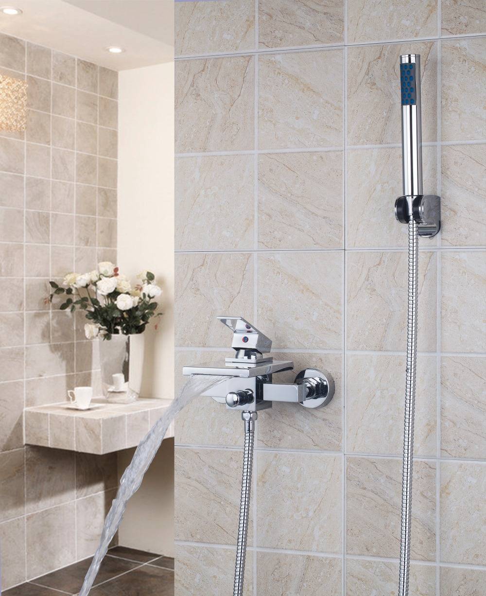 Подобным образом делается установка каскадного смесителя для ванны на стену. Одним из нюансов является то, что стена, на которую он крепится, должна быть ложной, чтобы всегда имелся доступ к подводу.
