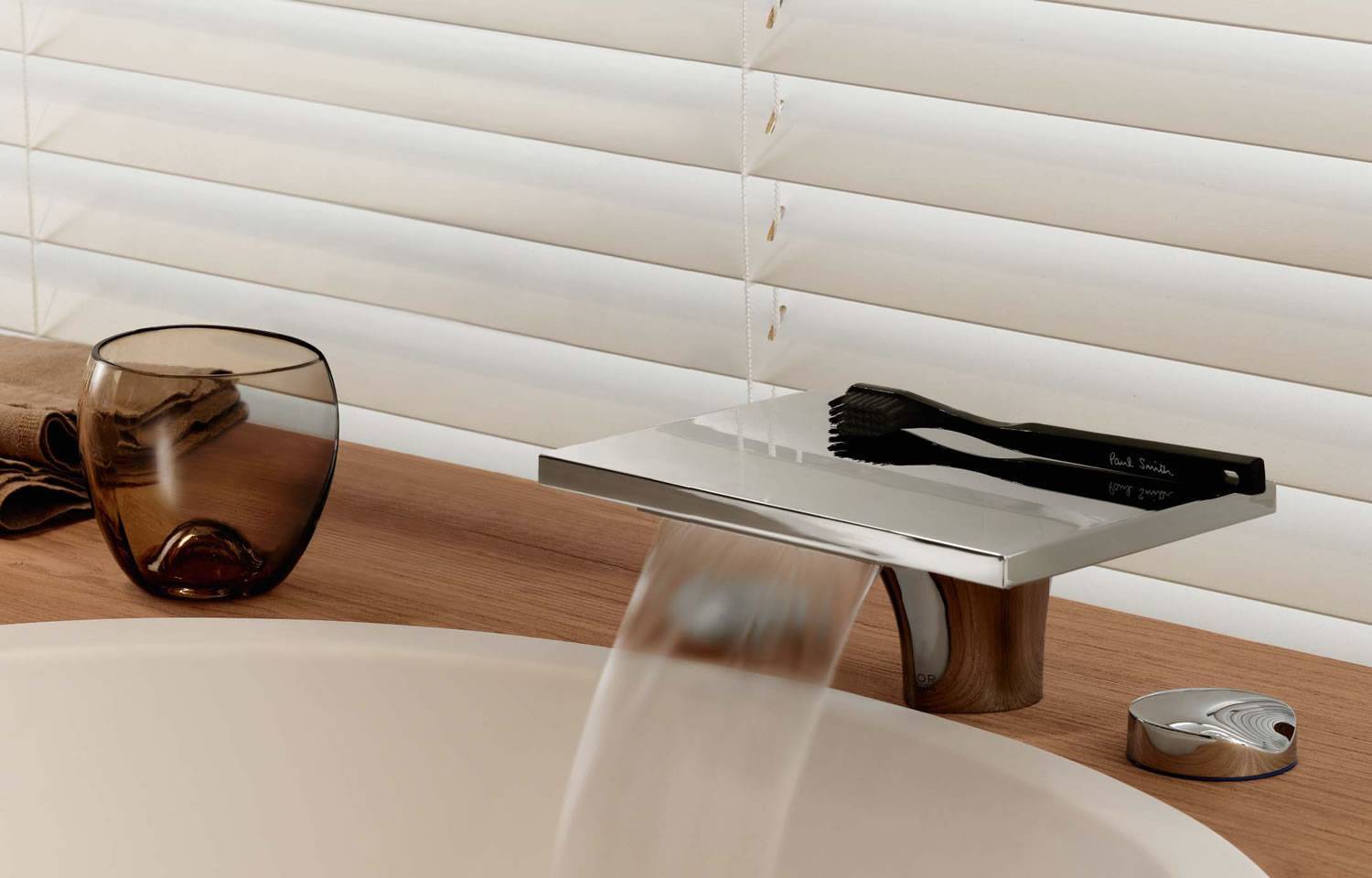 При оформлении ванной комнаты в современном дизайне стоит обратить внимание на каскадные смесители. Они стоят дорого, однако характеризуются такими преимуществами: