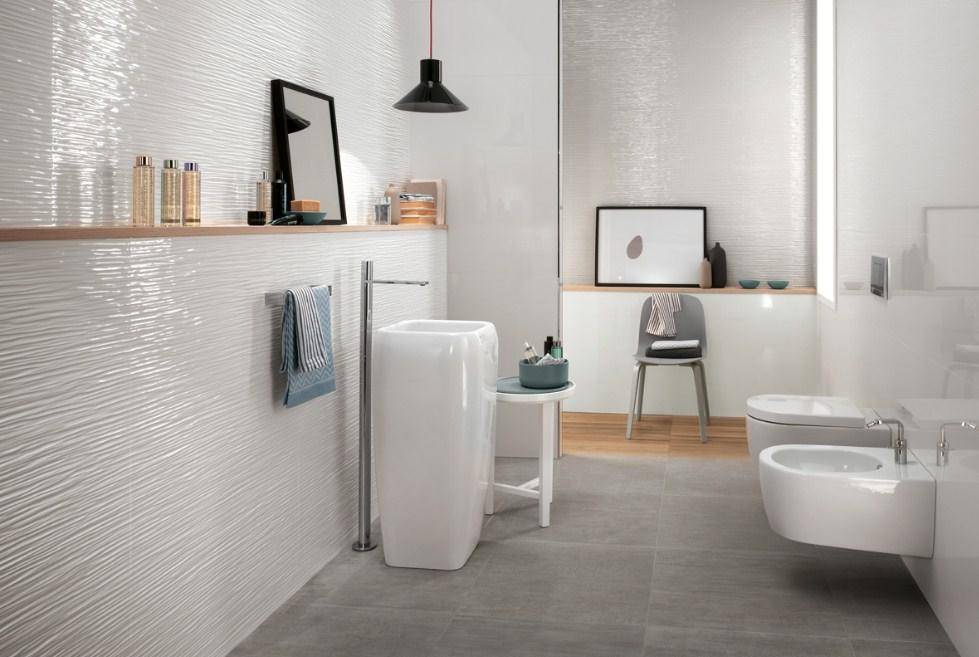 Объемная плитка способна подчеркнуть сильные стороны ванной комнаты и придать ей неповторимости